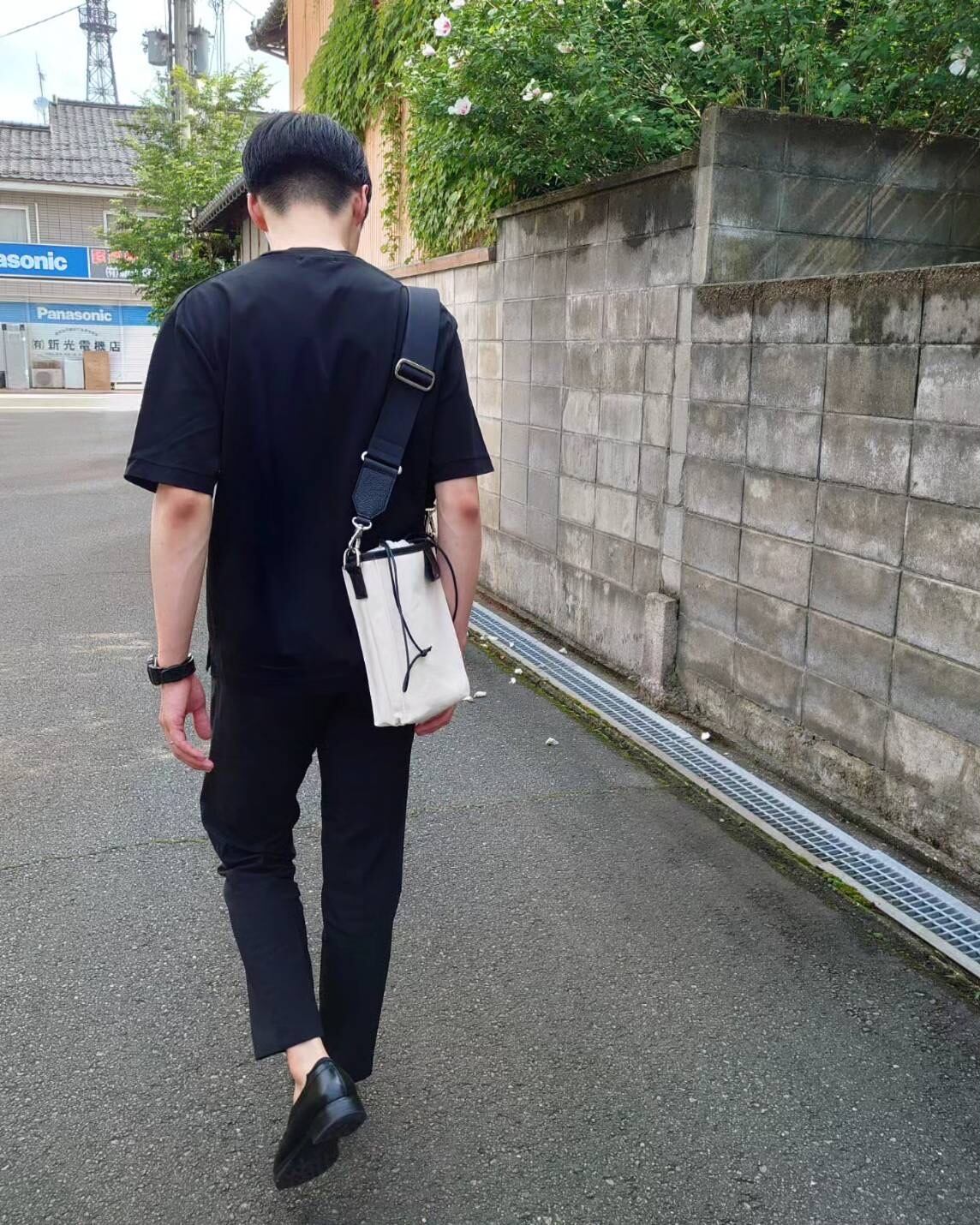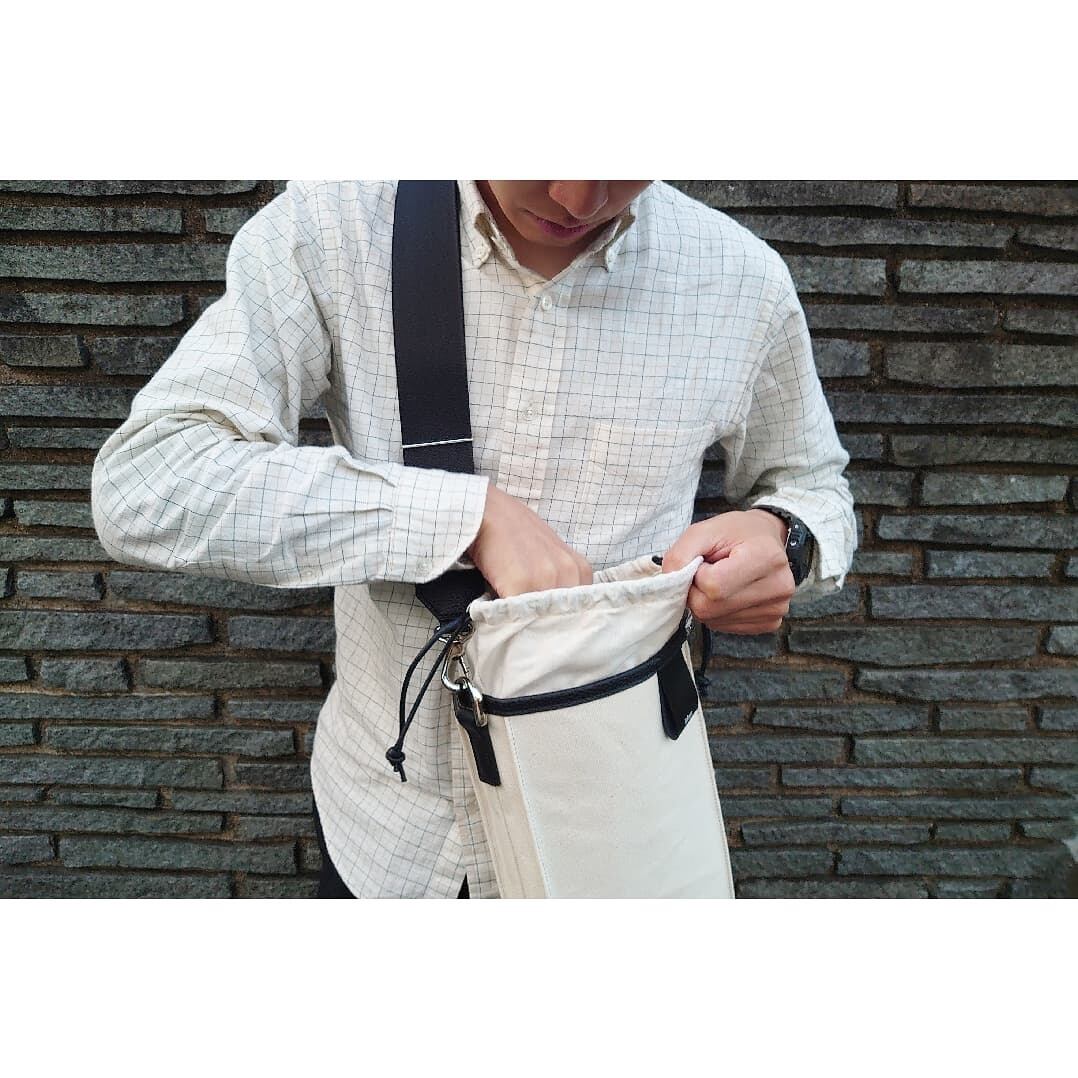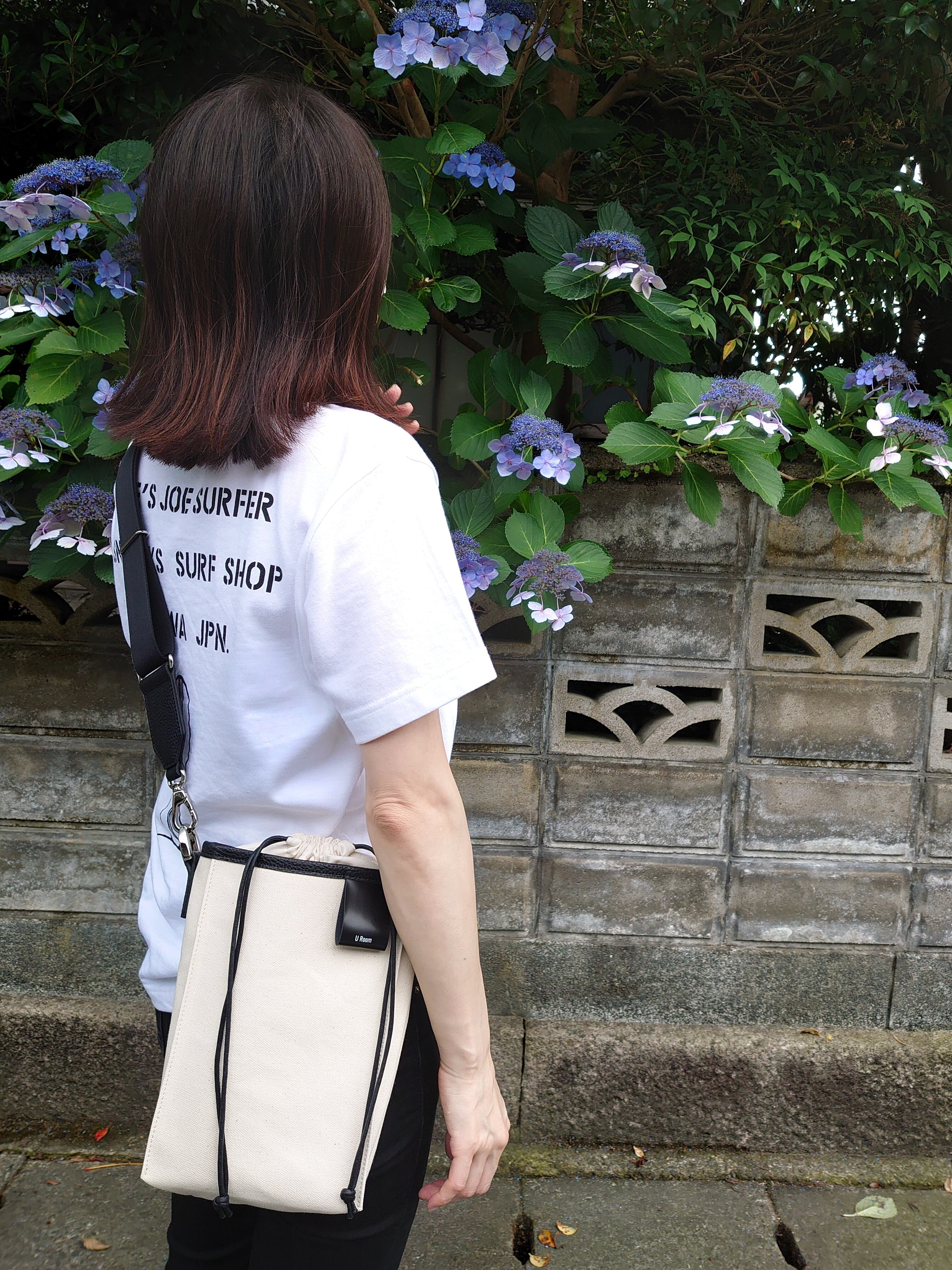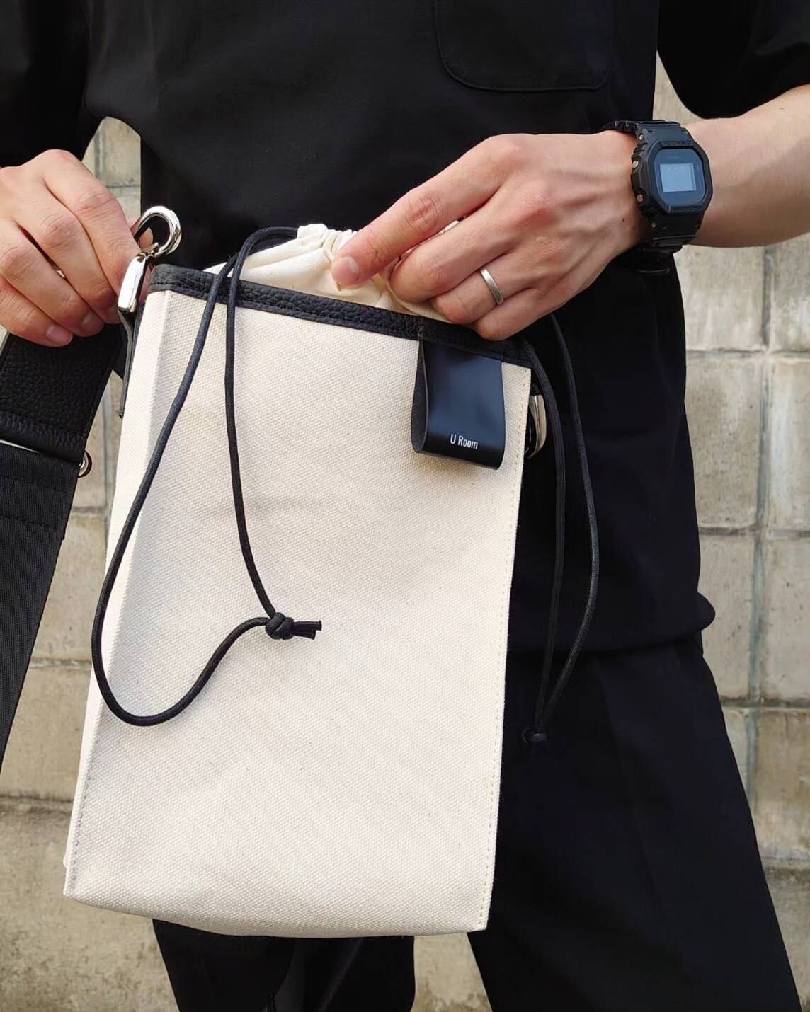 肩にかけて使う他に、巾着紐を持って使うのもオススメです。