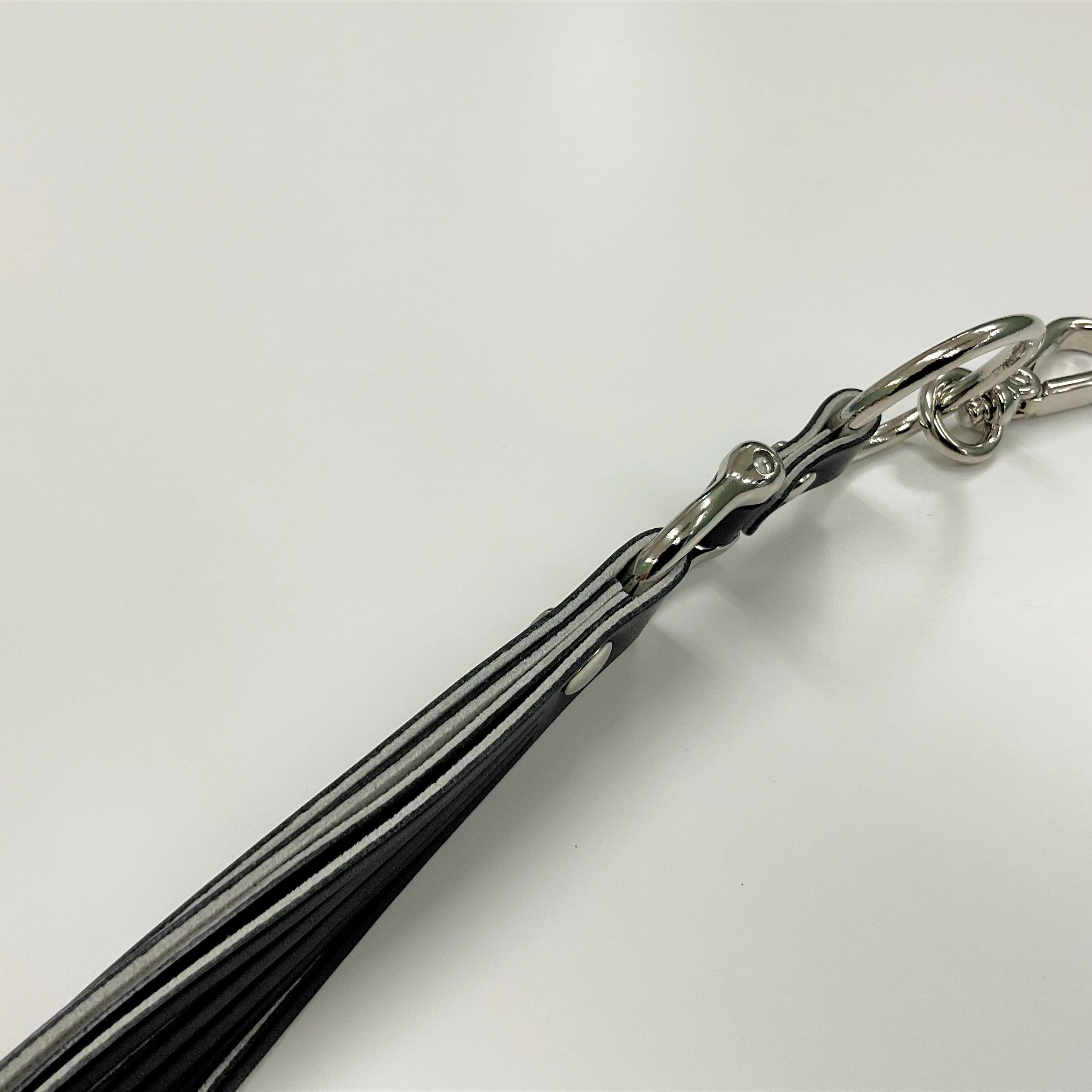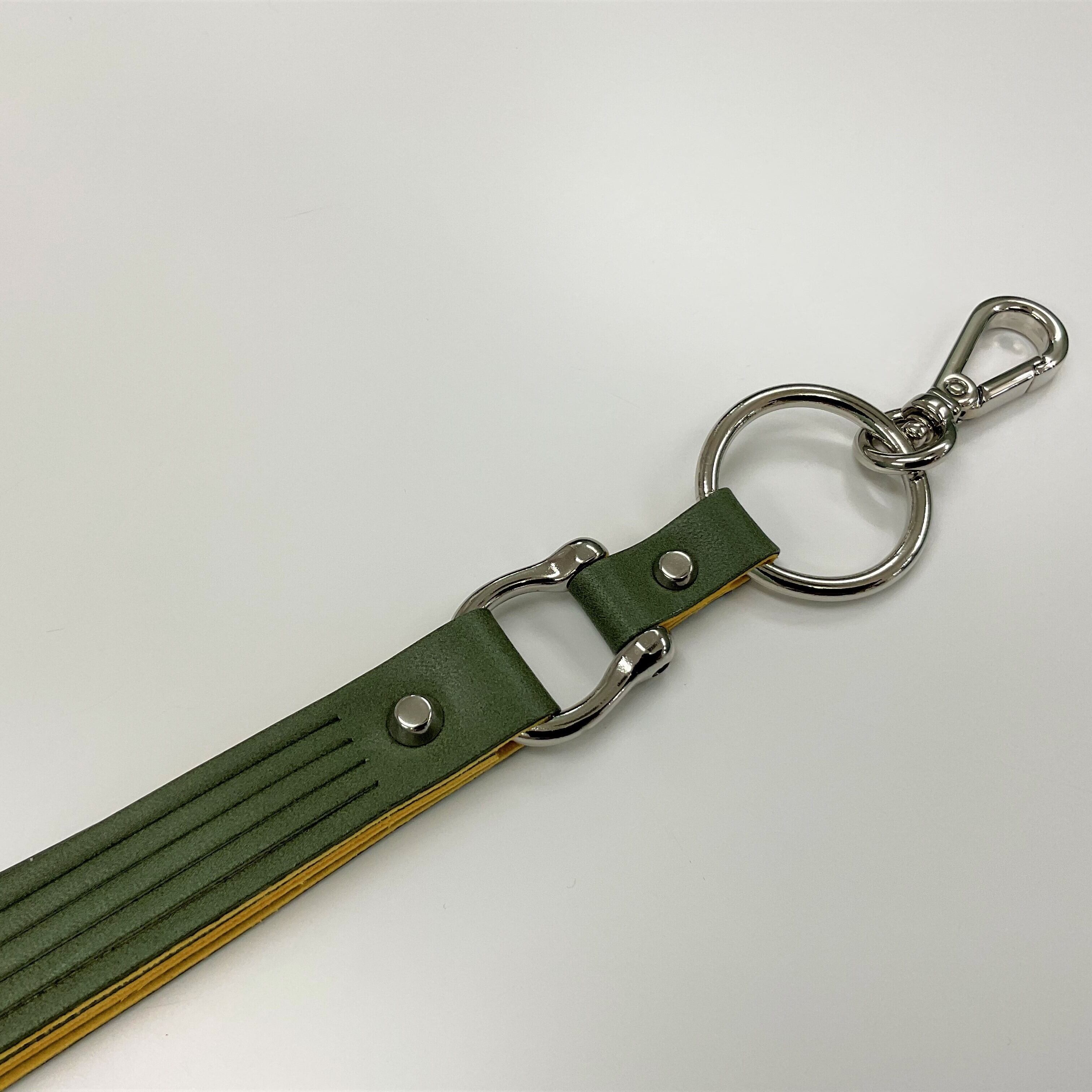 ボリュームのあるシンプルなデザインに、シルバーの金具が映えるキーホルダーです。